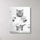 Cat Lovers Bathroom Wall Art, Black and White Cat Canvas Print