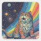 Cat Meows in space With Rainbow Square Sticker