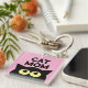 Cat Mom keychain gift for cat lovers and pet owners. Cute kitty and humourous quote. Fun gift idea for animal lover, cat owner, cat person, crazy cat lady, pet lover etc. Pink or custom background colour. Funny black cat cartoon with big yellow eyes. Square and round options.