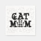 "Cat Mom" text with black and white buffalo plaid pawprint and black cat hairs on white background.