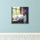 Cat Napping on the Window Sill | Purple Flowers Canvas Print