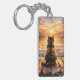 Cat on Dock at Sunset Keychain