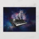 Cat on synthesizer in space postcard