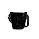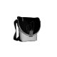 This messenger bag is illustrated with two white outlines of a cat silhouette on a black background. It includes space for a name written in white along the top of the bag.