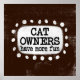 "Cat Owners Have More Fun" is a cute text design in brown with black text, along with a white accent shape and white textured whimsical dots surrounding it.