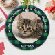 Cat Pet Photo Green Plaid Kitten First Christmas Ceramic Ornament