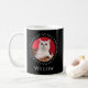 A cute pet cat photo mug that's customizable with your own favourite pet portrait. Featuring an elegant paw print frame surrounding a round image of your pet kitty. The perfect gift for a proud pet owner. Personalize the photograph, name and even the colour of the paw prints - just tap 'customize further'