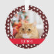 "Celebrate the holidays with a personalized touch! This customizable ceramic Christmas ornament features a photo of your beloved Cat on a festive red background with a charming paw print. Perfect for adding a heartfelt furry friend to your holiday decor, this ornament makes a thoughtful gift for any dog lover. Durable and beautifully crafted, it's a keepsake she'll treasure for years to come."