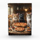 Pictured Are Four Cats Sitting Around A Table With A Pizza Ready To Eat.