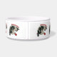 I love this bowl. It's nice and heavy and feels well made. I think Zazzle could make it even better however. This large bowl is actually on the small side for a large dog. I'd love to see one size larger. Also, if you want a colored background, there will be a rather thick strip of white on the top and the bottom. I wish I could have the entire face of the bowl printed in a color. The printing is crisp and clear and does a good job of showing off my Create With Photos running Portuguese Water Dog design.