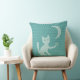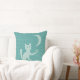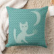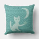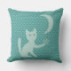 Cat Playing with Moon and Stars Teal Throw Pillow