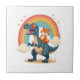 Cat Riding Dinosaur T-Rex Kitten Rainbow Dino Funn Tile