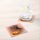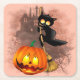Cat Scared by Pumpkin Fun Halloween Character Square Paper Coaster