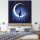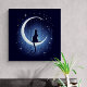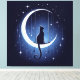 Extra Large (101.60cm x 101.60cm) Canvas print wall art. A cat sits on the crescent moon surrounded by stars in the beautiful midnight blue sky.