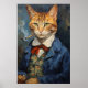 cat smoking Tobacco pipe art print, cat painting Poster
