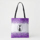 Purple and white tote bag for your everyday needs. Cute cat in centre.