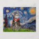 Starry Night by Vincent Van Gogh, now adapted to include an American Short Haired brown tabby cat.