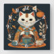 Cat Tea Time Japanese Square Wall Clock
