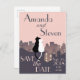 Save the Date layout, with cats element and urban view. Cartoon design, appropriate for wedding announcements, engagements. Text must be personalized.