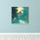 An underwater cat watches a fish. Cats can dream can't they? Size 16"x16". The 1-1/2 deep canvas has that professional look and will add some sophistication to your space. Designed by the Ziponline Cat Art store on Zazzle - Image ©2023