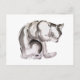 Cat washing sumie ink painting postcard