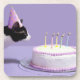 Cat wearing birthday hat blowing out candles on birthday cake | Steven Puetzer | AssetID: sb10064212b-001