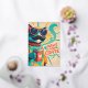Cat wearing oversized sunglasses, holding a coffee foil greeting card