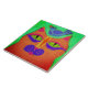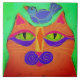 My colourful abstract digital painting of a cat with a bird on his head printed on ceramic tile