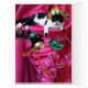 Expressive, funny, natural masked black white cat with Arlecchino hat on vibrant pink ,fuchsia silk clothes .Elegant,whimsical ,colourful ,artistic Venetian masks with peacock feathers from our Collection with gold floral fantasy, and bright purple,red,violet flourishes. Original watercolor painting, Photography ,Digital Collage and Graphic Design by Bulgan Lumini - Baldesign3d (c)