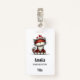 Name badge with a whimsical drawing featuring a big orange red kitty cat.