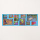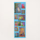 A yoga mat with colorful cats and a blue background