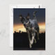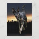 Catahoula Leopard Dog running against a black and peach coloured sunset.