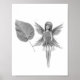 Black and white illustration of Catalpa Tree Fairy with leaf