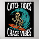 Catch Tides Chase Vibes Skeleton Surfer Beach Poster