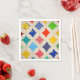 Colourful cathedral window quilt pattern with cotton muslin, calico print, and gingham.