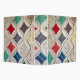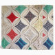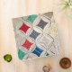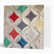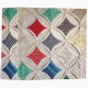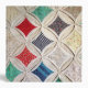 Close up of old cathedral window quilt pattern with calico prints and muslin fabric.