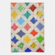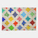 Handmade cathedral window quilt design with calico and muslin fabric.