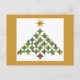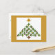 This postcard features a Cathedral Windows style Christmas tree with red, green and gold ornaments.