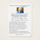 These cards are the perfect size to distribute at funerals. Has an entire poem at the back. The price was reasonable for 100 cards and they were delivered promptly. I am very satisfied with this product and will purchase all of my paper products from Zazzle. Printing is perfect. The back of the card has a poem and a verse that is easy to read. Very happy with this product