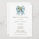 Featuring a beautiful custom designed elegant Catholic bridal shower invitation with a vintage image of the Virgin Mary, Our Lady of Grace overlaid on a blue bow with a holy rosary. All text and fonts can be modified.