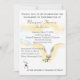 Beautiful Confirmation Invitation design features the image of a descending dove with an olive branch as background design. Dove appears to be glowing, as the Holy Spirit. Image of a knight is pictured at bottom left corner representing a soldier of Christ.