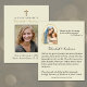 Elegant and simple religious funeral service prayer card with a photo and gold crucifix on the front and an image of Mary holding Baby Jesus with a beautiful prayer and scripture quote on the back. All text and fonts can be modified.