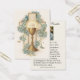 Remember your loved ones in prayer with this beautiful Holy Eucharist overlaid on a cross with blue floral design memorial holy card. These beautiful cards are commonly distributed at funerals as a reminder to pray for the deceased. All text and fonts can be modified.