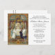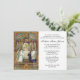 Beautiful traditional Catholic First Holy Communion invitation with Jesus holding the Eucharist with angels offering it to a young boy and girl at the altar. I believe the Saints accompanying them are St. Aloysius Gonzaga and St. Agnes. Suitable for a boy or a girl's Communion.