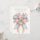 Featuring a beautiful image of the Blessed Virgin Mary holding the Baby Jesus overlaid on a pink and blue bow with flowers. A scripture verse below. All text and fonts may be modified.