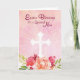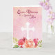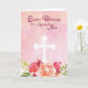 Bring the joy of the risen Lord at Easter to a Catholic nun with this pretty pink and peach floral card. Watercolor look background and flowers add a soft touch surrounding the white cross with rays coming from them centre. Beautiful card to wish Easter blessings to a nun.