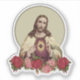 This beautiful contour sticker features a traditional Catholic image of the Sacred Heart of Jesus, Merciful Jesus with vintage red and pink roses below.