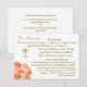 Designed to coordinate with the Terracotta Rose Catholic Wedding Suite, this design is simple yet elegant. Your text is featured in a gold-colour displayed in proper format for an enclosure card and displays the traditional cross and rings symbol for marriage at left of text. The image of a terracotta and peach rose bouquet is displayed at bottom left.
