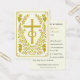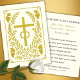 A timeless Catholic wedding keepsake beautifully featuring a gold-embossed cross with interlocking wedding bands, framed by grape clusters and symbolic foliage representing the fruitful union of Holy Matrimony. The front of this sacred design recalls the dignity of the sacrament, while the reverse offers a prayerful reflection and personalization with the couple’s names and wedding date. A reverent memento for Catholic nuptials, ideal for distributing at the Nuptial Mass or as a lasting token of sacramental grace.