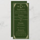 Catholic Winter Wedding design features the proper menu format for an elegant or formal wedding reception. Text is displayed within a lovely thin border, the image of a winter wreath displayed at corners. Reverse features a special message of gratitude from the bride and groom in a lovely cursive font. Couple's names and wedding date are displayed below in a smaller print. Colour - sepia and hunter green. Very formal and elegant.
